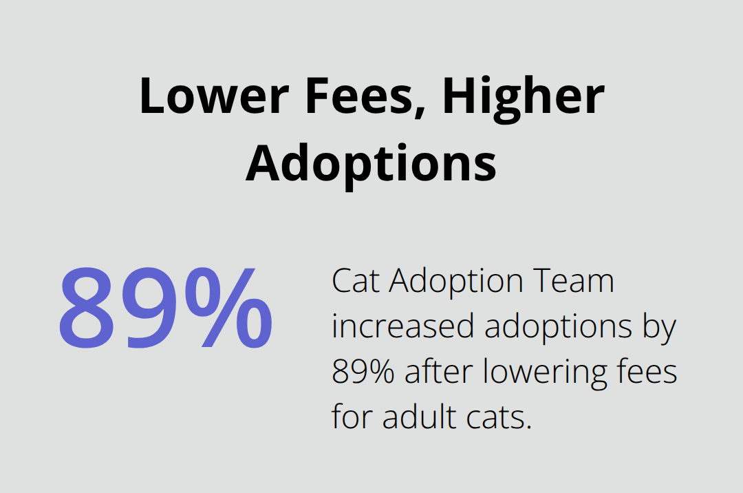 Research shows that adoption fee amounts don’t actually predict adopter commitment-one study found that waiving adoption fees increased adoption rates. Some shelters strategically reduce fees for senior dogs or animals with longer stays, recognizing that extended shelter time increases behavioral and health risks. The Cat Adoption Team increased adoptions by 89% when they lowered fees for adult cats, yet their total revenue actually grew because adoption volume more than compensated for lower per-animal fees.